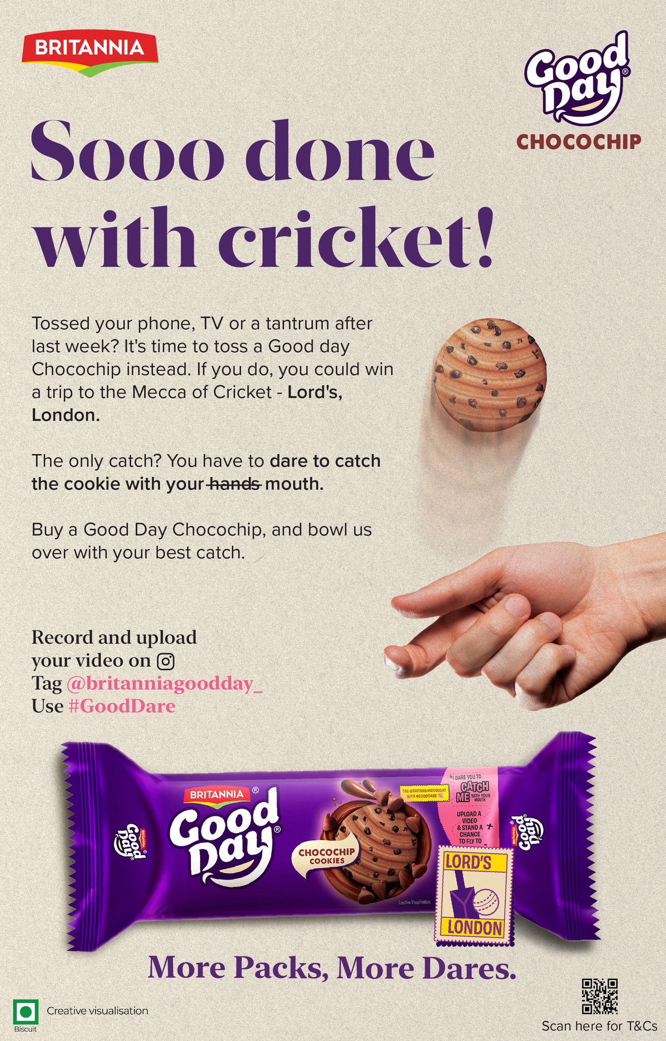 I got to build the entire design language for the campaign spanning social media, print, and even the biscuit packs all with the support of my then manager Shreya. (yeah, big on credit culture).